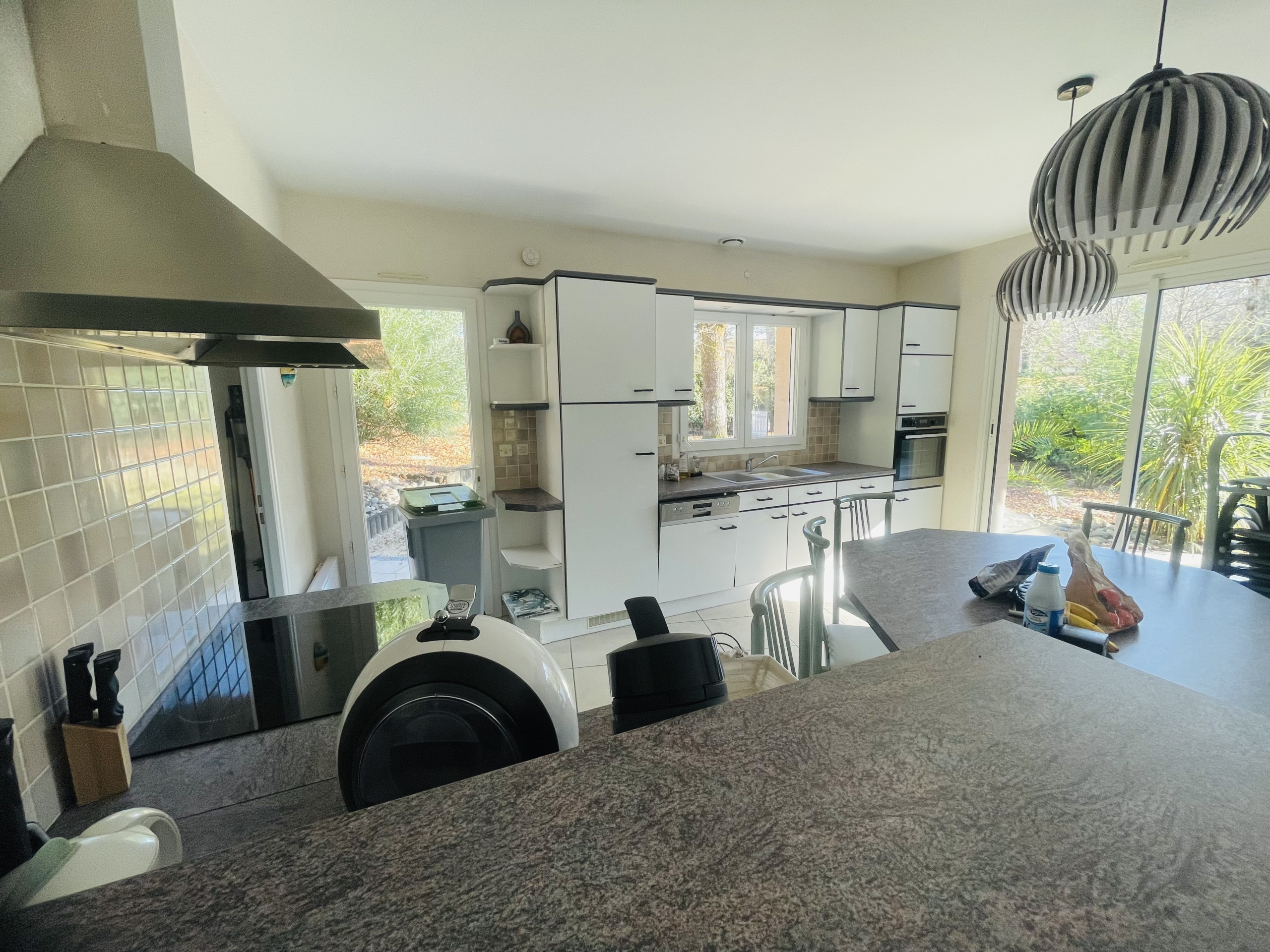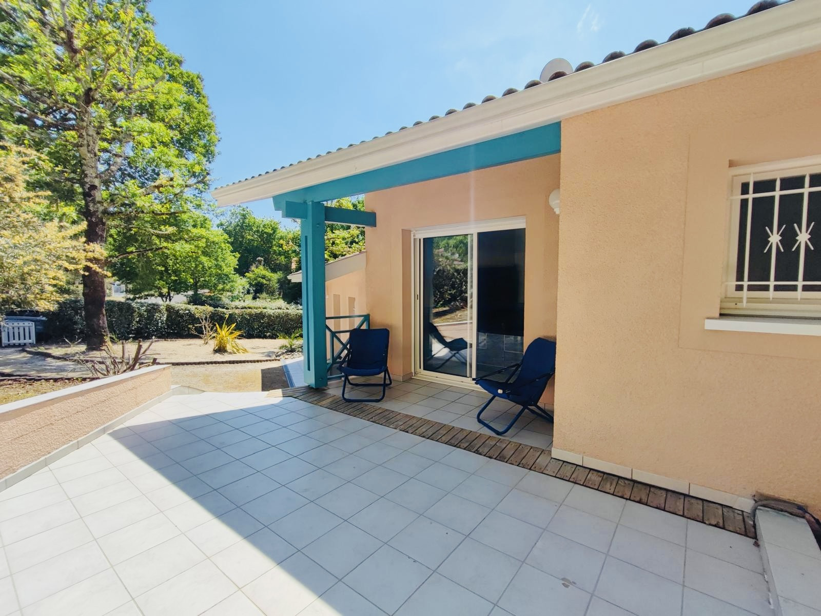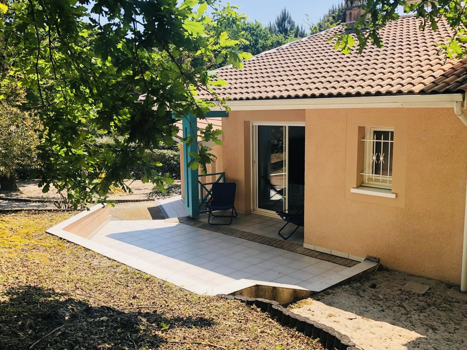 Cette villa d'une superficie de 130 m2 habitables est implantée sur un terrain arboré clos de 1541 m2 et à proximité du practice du Golf.