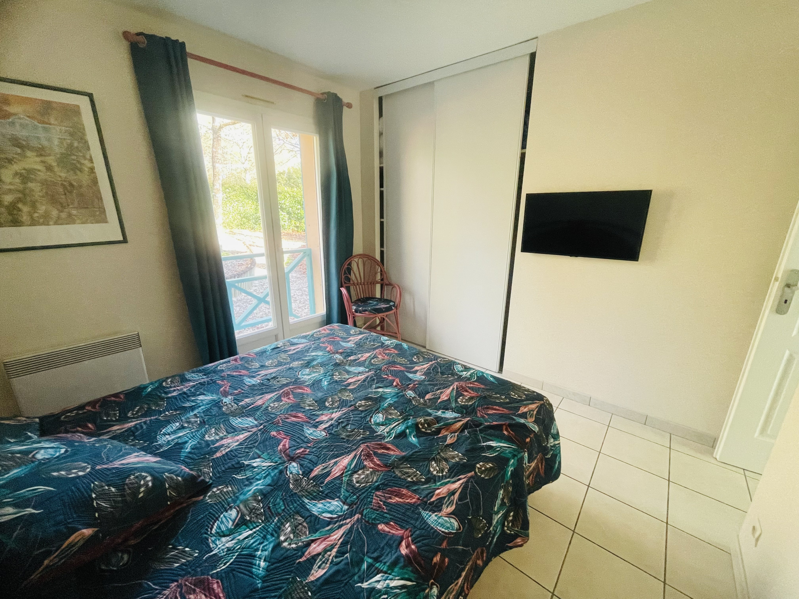 Elle se compose d'une entrée donnant sur un salon séjour lumineux avec une télévision et un accès sur une belle terrassse. La cuisine américaine entièrement équipée ravira les amateurs de cuisine, avec ses appareils : réfrigérateur, congélateur, lave-vaisselle, four, micro-ondes, machine à café, grille pain, bouilloire, cafetière senseo, un cellier attenant avec un frigidaire congélateur. Un WC avec lave mains.