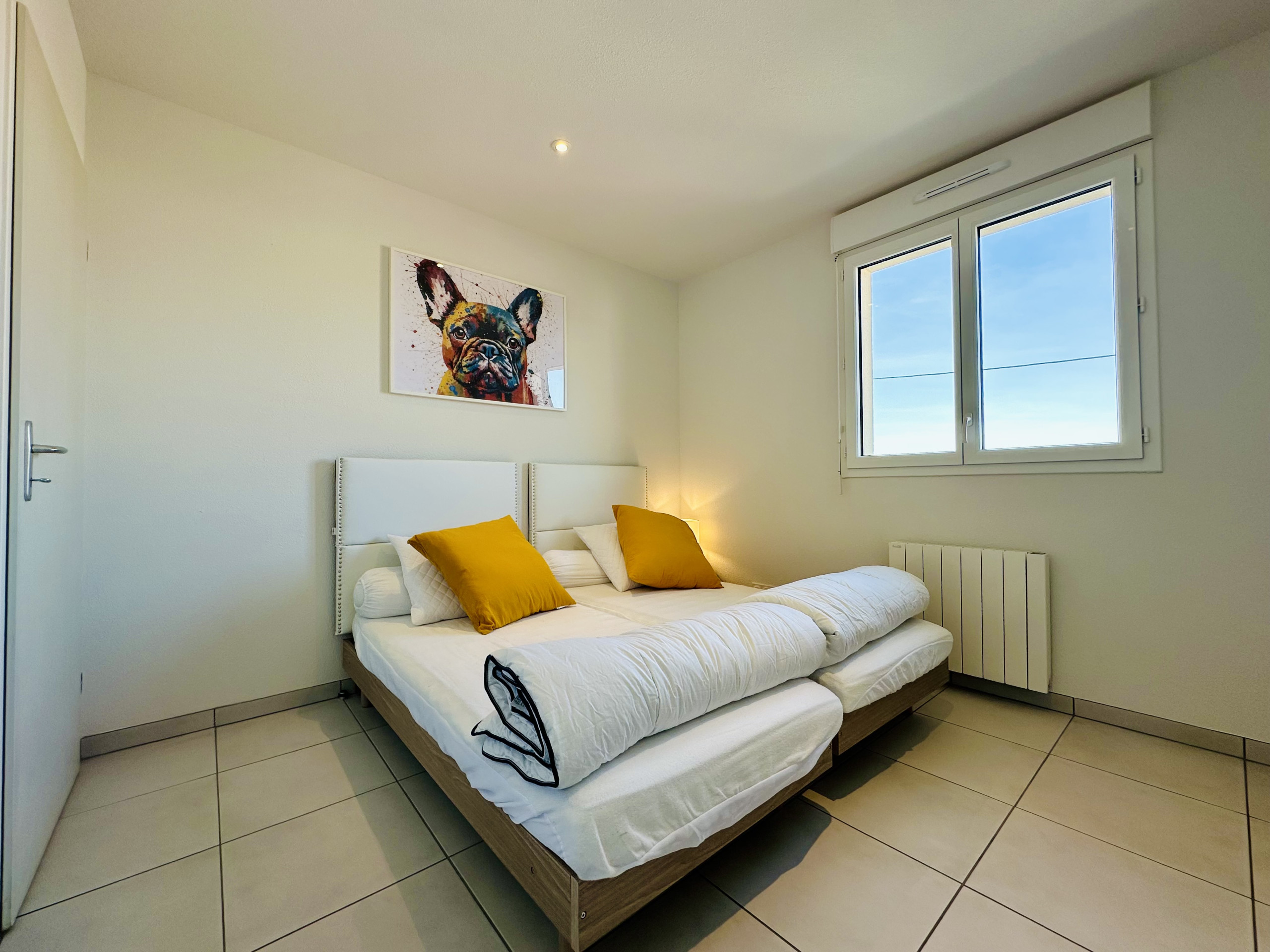 The apartment has two comfortable bedrooms, offering sleeping space for 4 people: a 160cm bed and two individual 90cm beds. The shower room with Italian-style shower will meet all your comfort needs. An independent WC with hand basin. The reversible air conditioning will allow you to enjoy a pleasant interior, even during the hottest days.