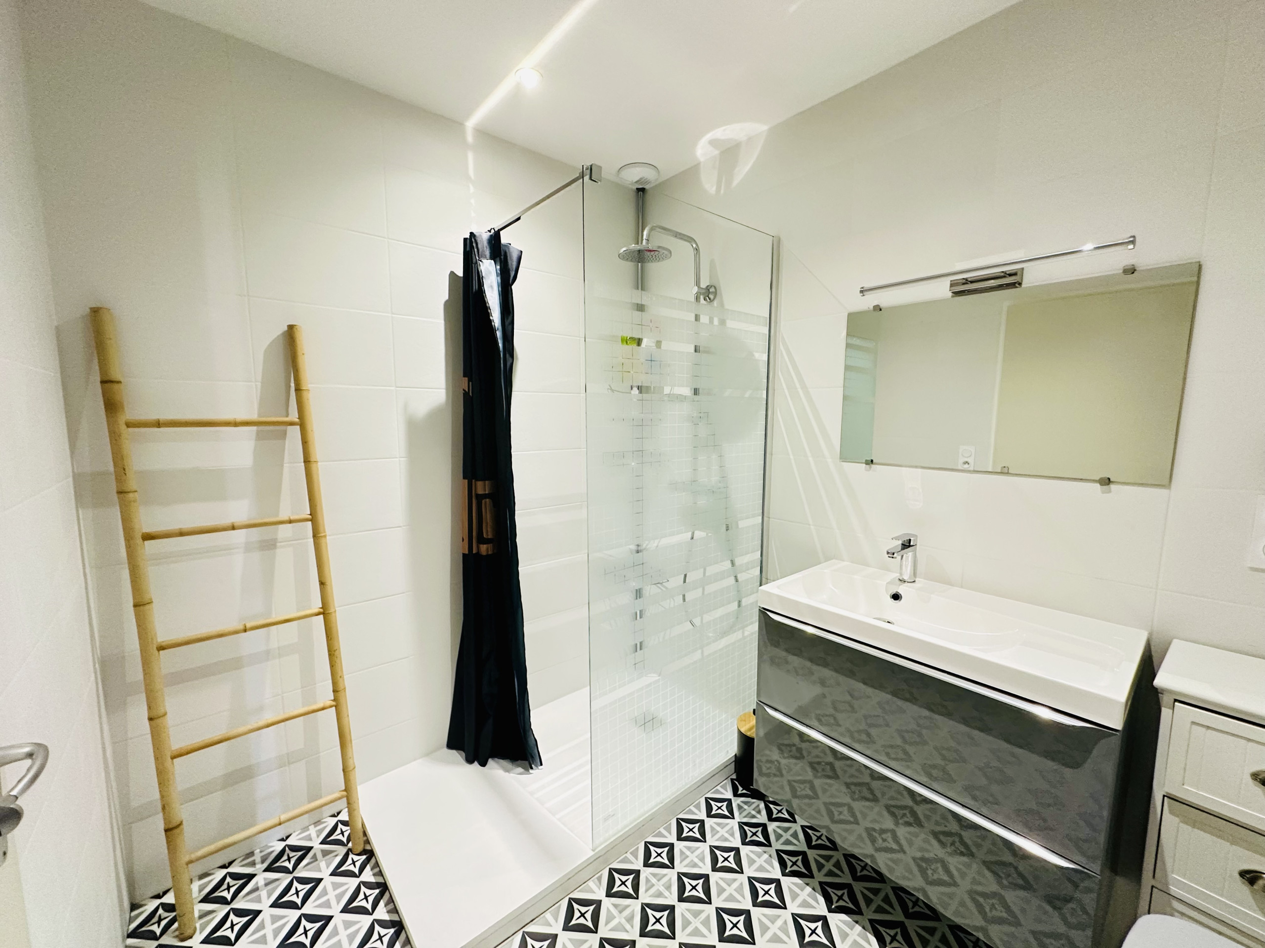 The fully equipped open kitchen will seduce you with its numerous appliances: refrigerator, freezer, washing machine, tumble dryer, Senseo coffee machine, oven, dishwasher, microwave, toaster, kettle, Ninja air fryer. The living room is fitted with a sofa, tables and chairs. Two televisions are also at your disposal for moments of relaxation.
