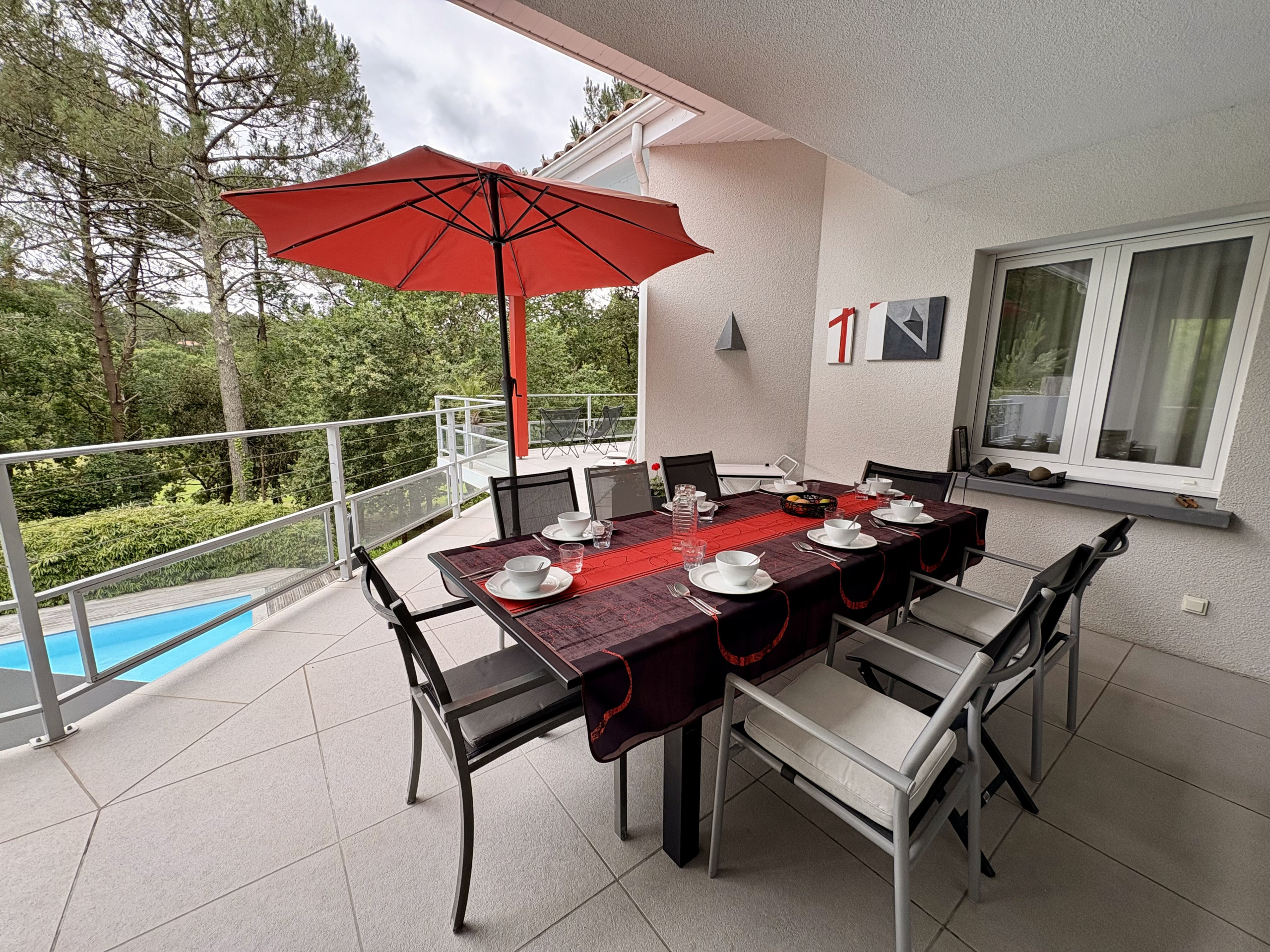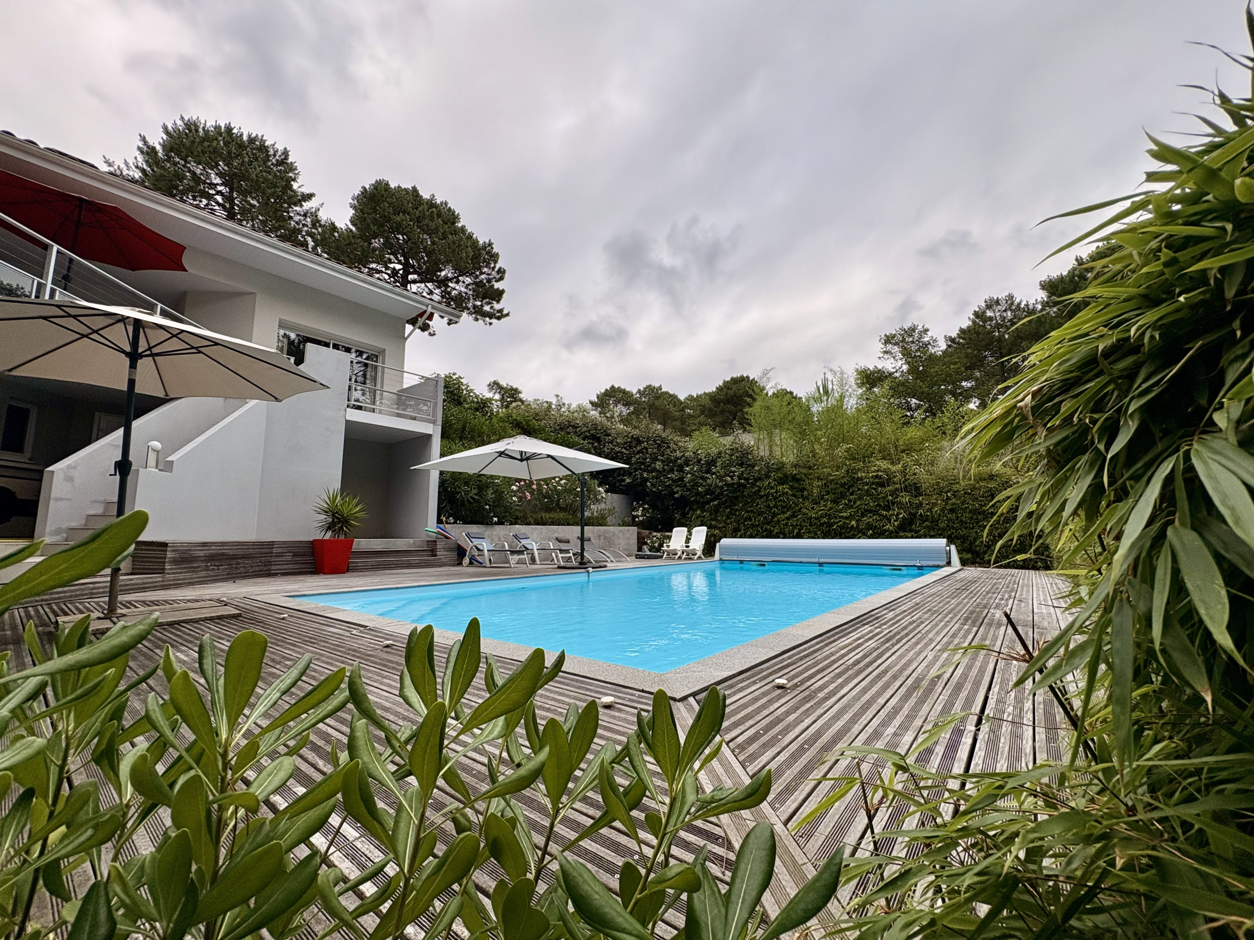 The villa in Biscarrosse has 5 bedrooms and has capacity for 8 people. The villa is homely, is very light, and is 145 m². The property is located 200 m from the golf course, 300 m from the the restaurant, 600 m from the sand beach, 600 m from the lake, 5 km from the city, 5 km from the supermarket. The house is situated in a family-friendly neighborhood surrounded by the forest. The accommodation is equipped with the following items: garden, garden furniture, fenced garden, terrace, washing machine, dryer, barbecue, iron, internet (Wi-Fi), hair dryer, childrens area, electric heating, air conditioning in some bedrooms, private heated swimming pool, open-air parking near the building, 1 TV. In the gas open plan kitchen, refrigerator, microwave, oven, freezer, dishwasher, dishes/cutlery, kitchen utensils, coffee machine, toaster and juicer are provided.