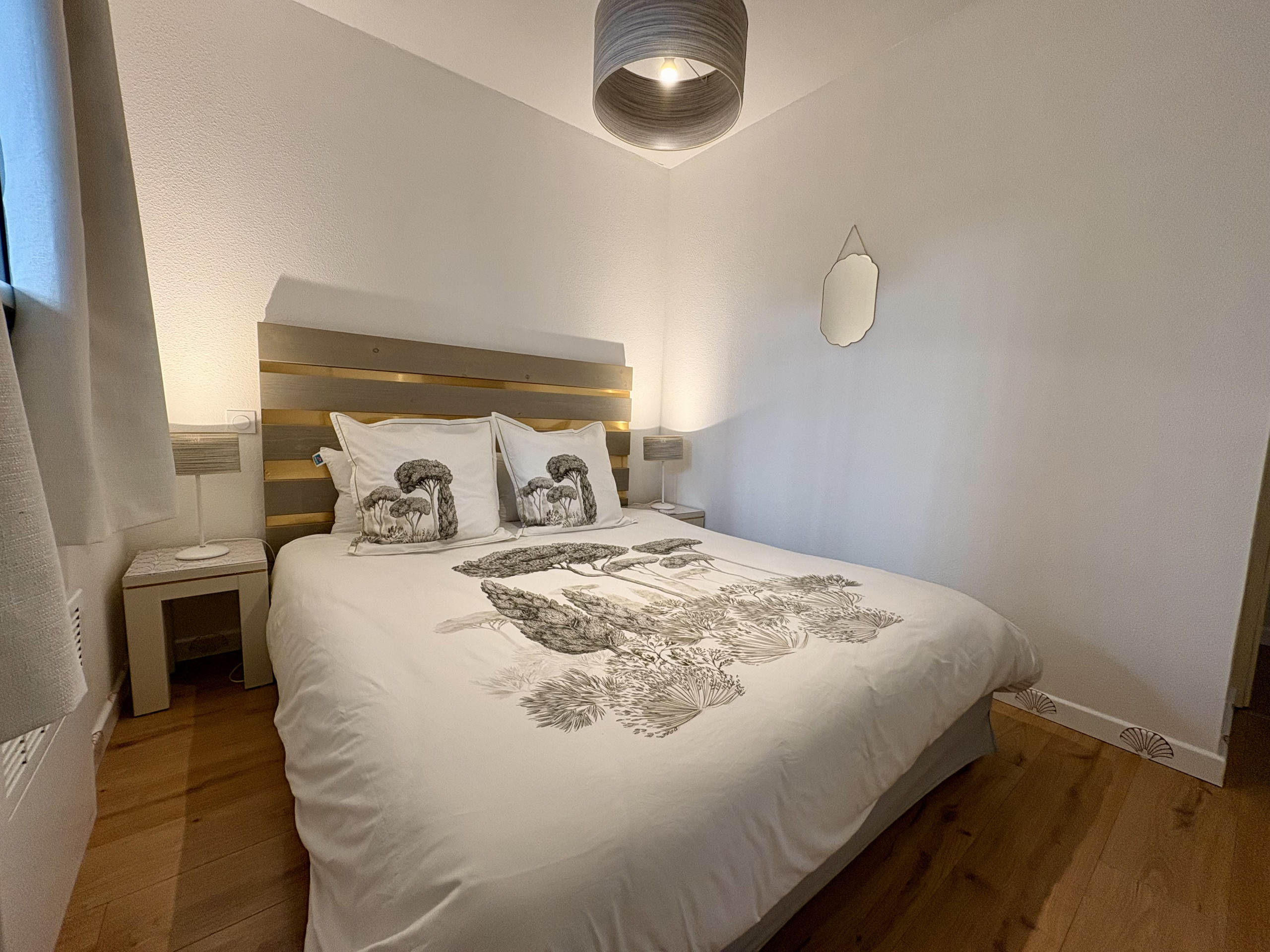 Angenehme Wohnung vom Typ T2 Kabine mit 42m² mit Balkon und Parkplatz, im 1. Stock einer gesicherten Residenz mit Schwimmbad und Aufzug, direkt am Strand von Biscarrosse Plage. Diese Unterkunft bietet Ihnen: Einen Eingang mit Parkett und Einbauschrank (Tisch und Bügeleisen, Staubsauger, Mopp,...), Eine Kabine mit Etagenbett 90cm x 2 mit Fenster und Verdunkelungsvorhang zur Seite der Durchfahrt.