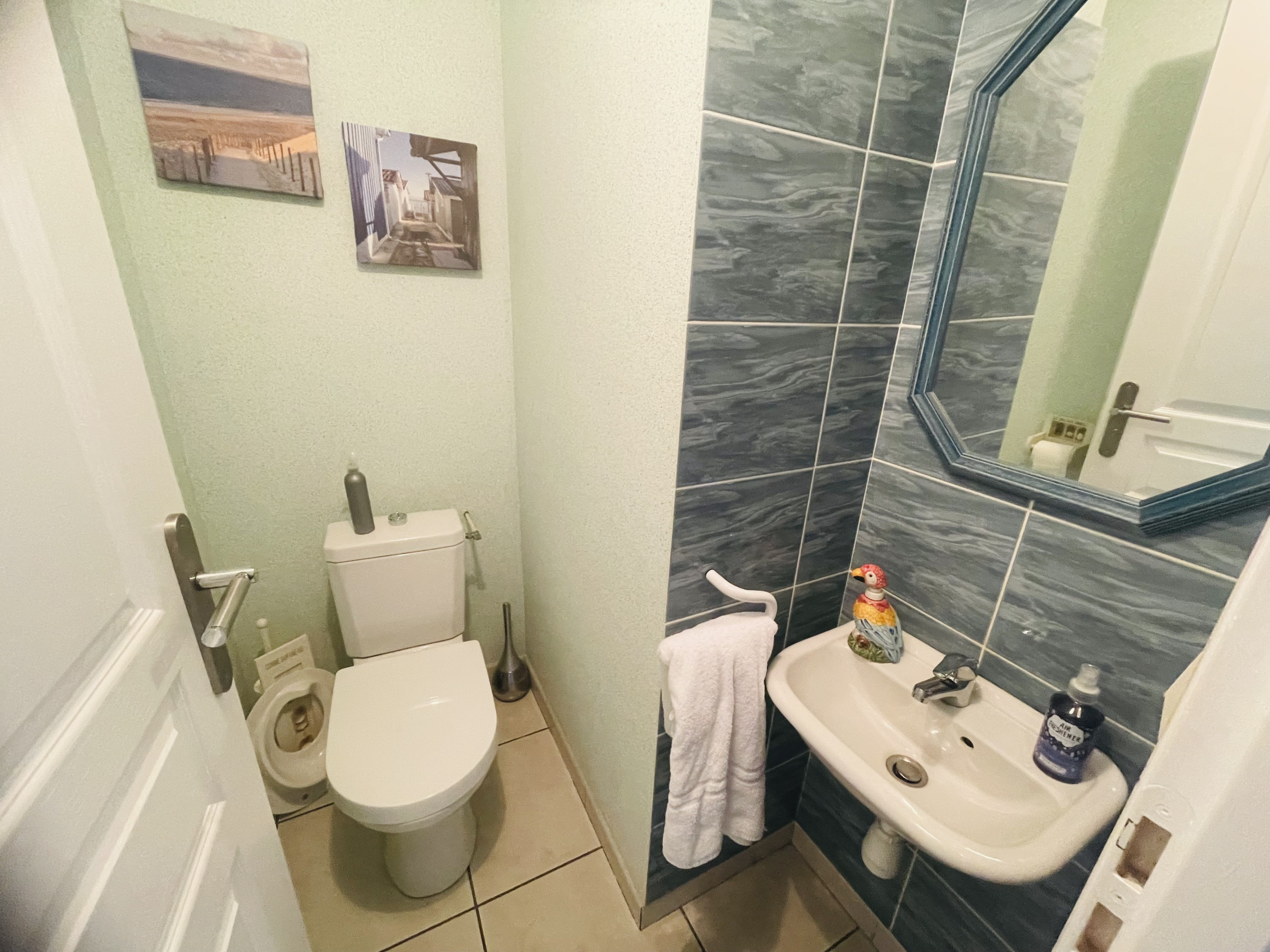 Sie besteht aus einem Eingang, der zu einem hellen Wohn-Essbereich mit Fernseher und Zugang zu einer schönen Terrasse führt. Die voll ausgestattete amerikanische Küche wird Kochliebhaber begeistern, mit Geräten wie: Kühlschrank, Gefrierschrank, Geschirrspüler, Ofen, Mikrowelle, Kaffeemaschine, Toaster, Wasserkocher, Senseo-Kaffeemaschine, eine angrenzende Speisekammer mit Kühl-Gefrierkombination. Eine Toilette mit Handwaschbecken.