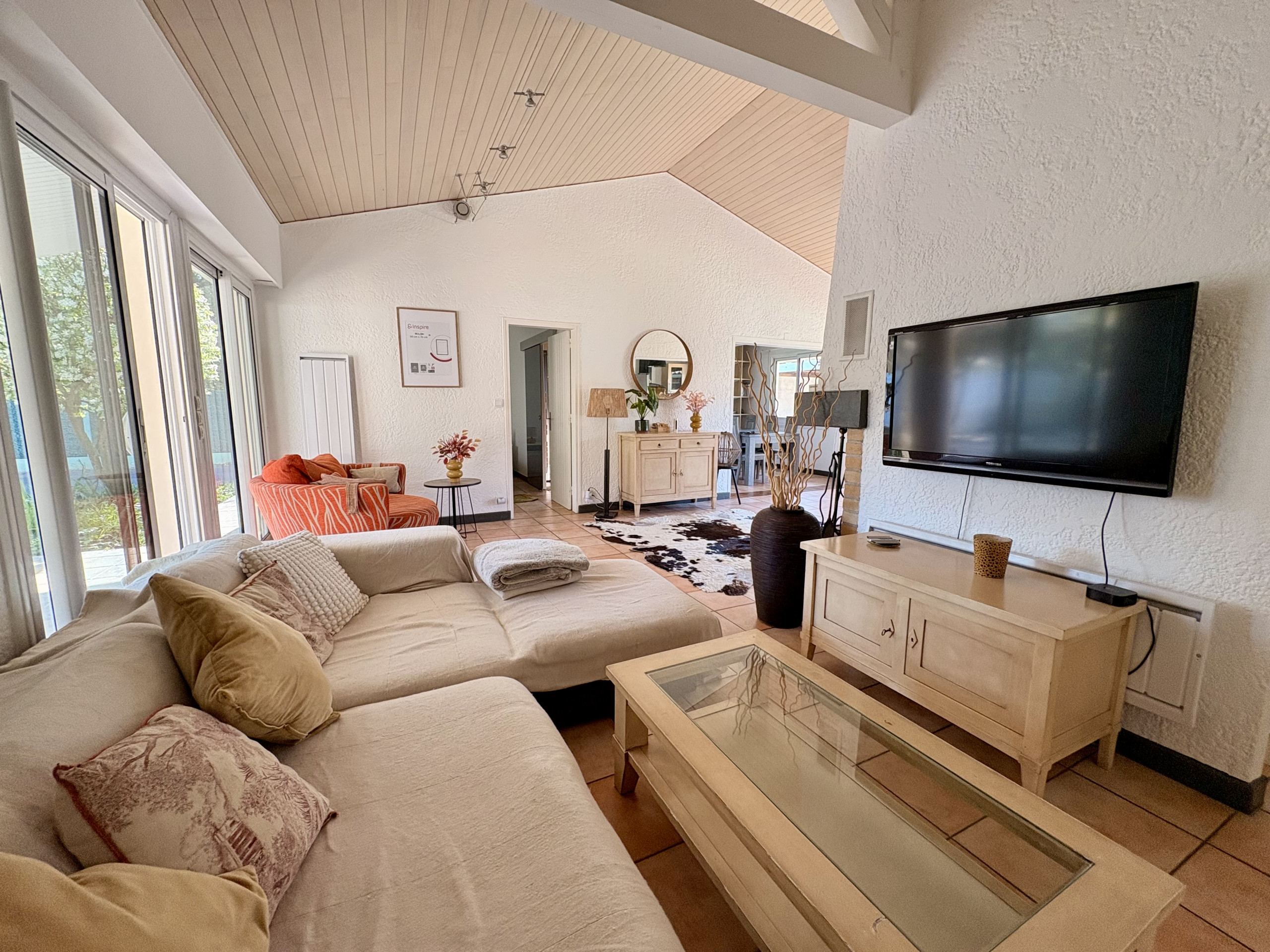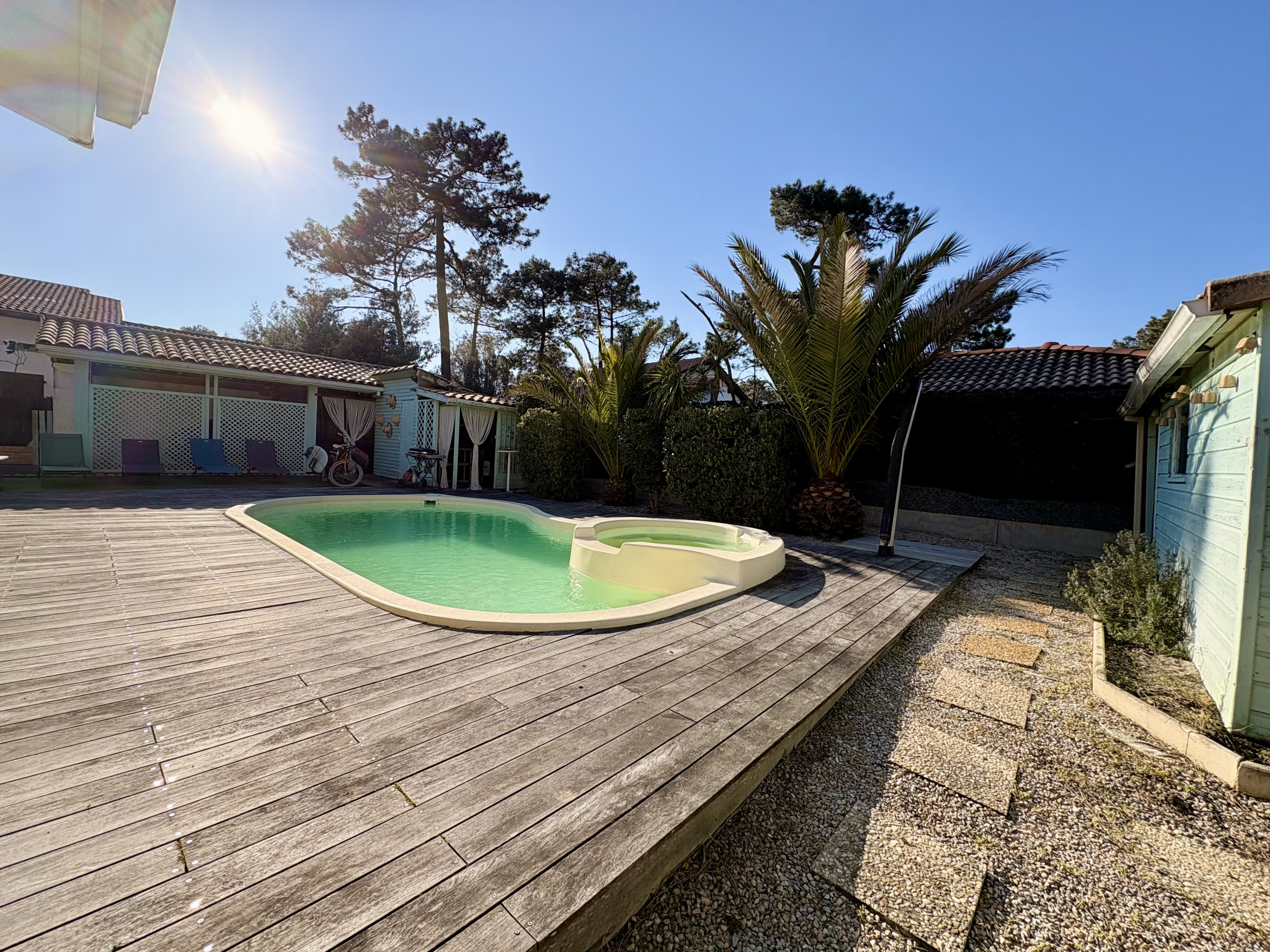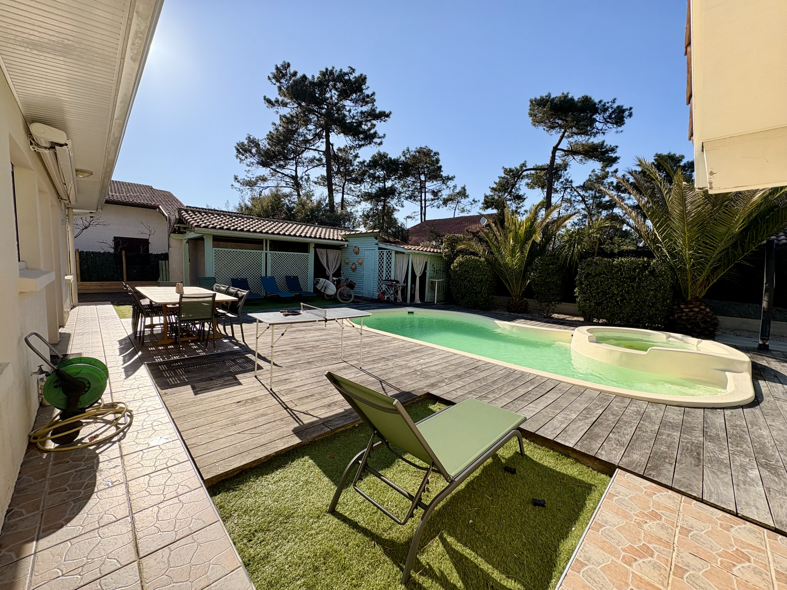 Die Villa in Biscarrosse verfügt über 4 Schlafzimmer und hat eine Kapazität für 10 Person(en). Die gemütlich und sonnige Unterkunft verfügt über 150 m². Die Unterkunft befindet sich 600 m vom Supermarkt entfernt, 800 m vom , 800 m von der Stadt, 900 m vom zum Sandstrand, 5 km vom Golfplatz, in einer idealen Umgebung für Familien und in einem Wohnsiedlung. Die Unterkunft verfügt über eine Waschmaschine, ein Bügeleisen/-brett, ein Internetanschluss (WLAN), ein Föhn, einen klimatisierter Privatpool, eine überdachter Parkplatz in Grundstücksnähe, 1 Fernseher. Die Offene Küche mit Induktions-Kochfeld ist ausgestattet in einen Kühlschrank, eine Mikrowelle, ein Backofen, Gefrierschrank, eine Spülmaschine, Geschirr/Besteck, Kochutensilien, eine Kaffeemaschine, einen Toaster und einen Wasserkocher.